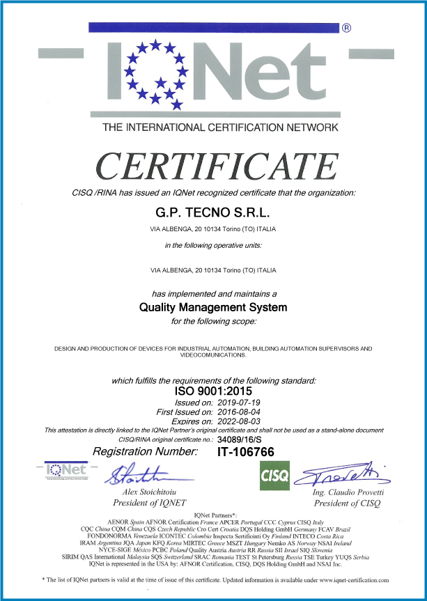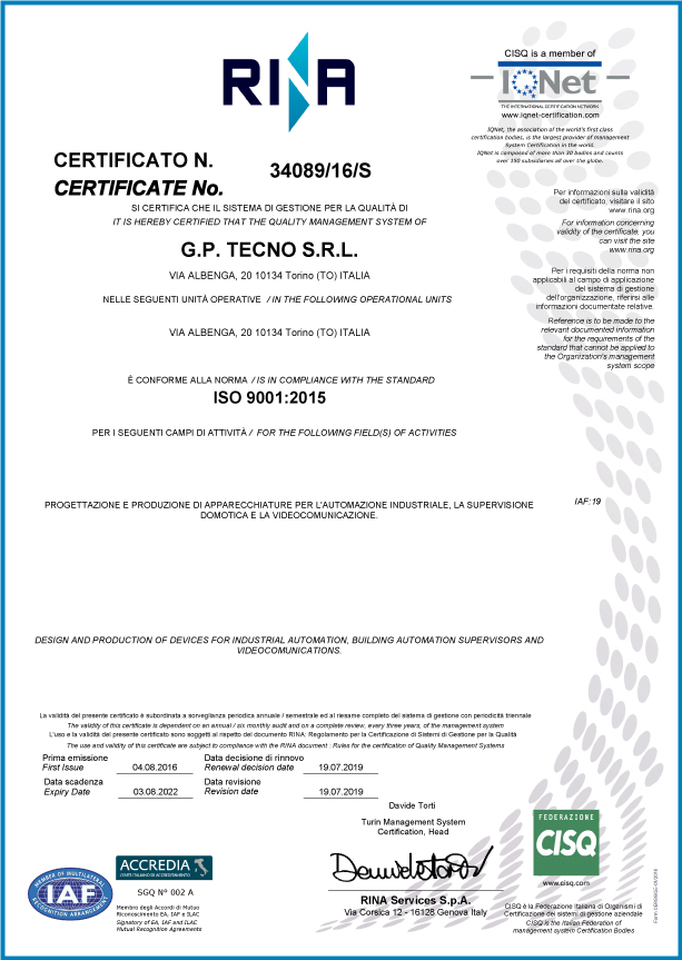 del prodotto, seguendo metodologie e procedure per garantire al Cliente il massimo della garanzia, dalla produzione alla vendita.